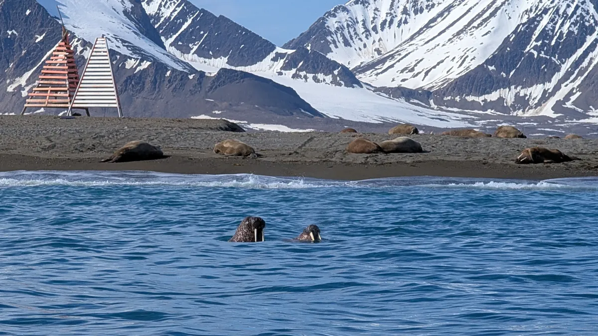 We sailed within meters of glaciers towering four times higher than Capsula’s mast. We passed so close to icebergs that we could scoop chunks for our cocktails. Curious walruses popped their heads near our hull (though later we learned this was probably territorial, not friendly).